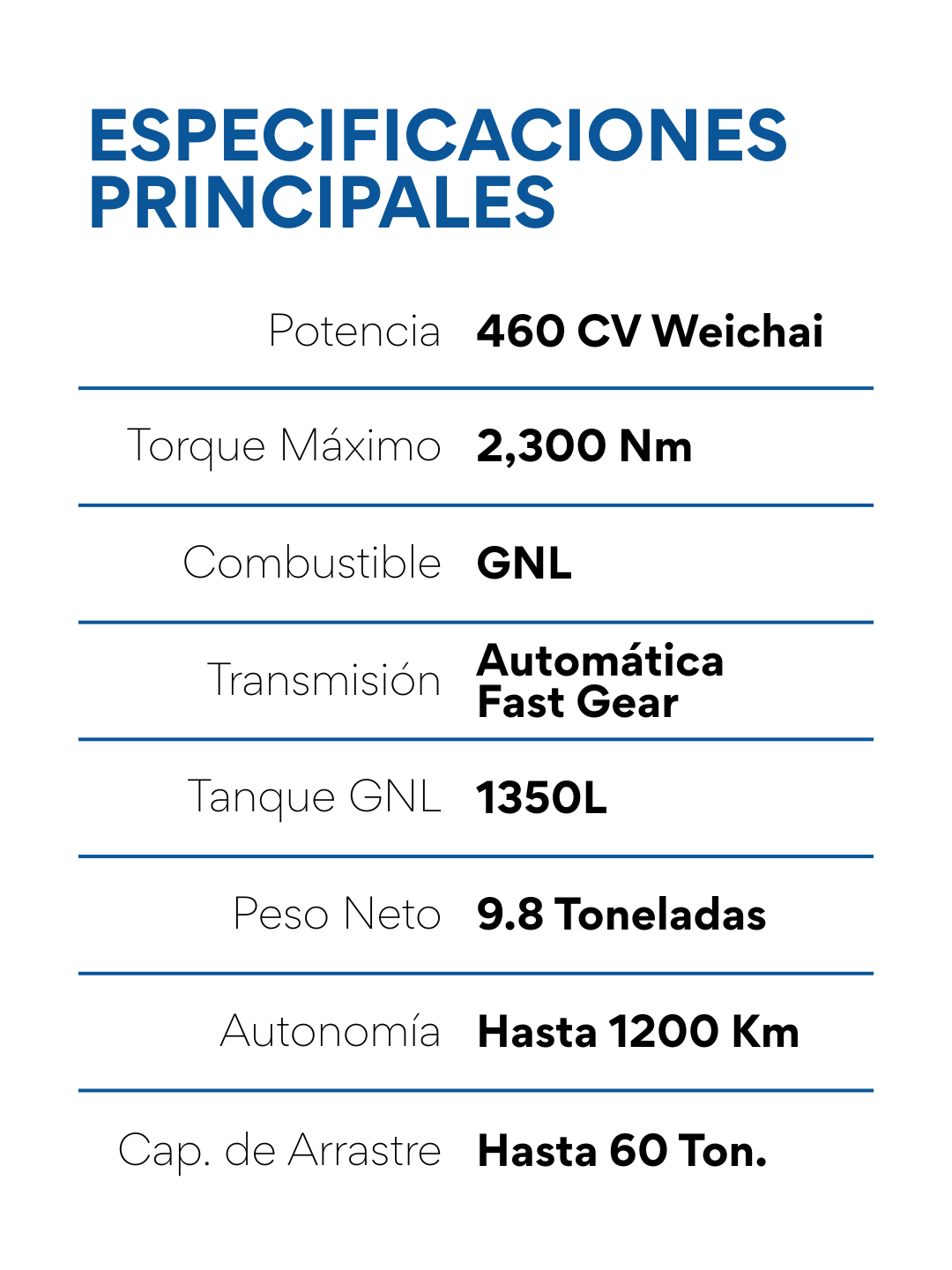 El Shacman X5000 a GNL con tanque de 1350 litros extiende la autonomía sin perder rendimiento. Diseñado para rutas regionales que exigen eficiencia operativa y menor impacto ambiental. Potencia, alcance y sostenibilidad en un solo vehículo.